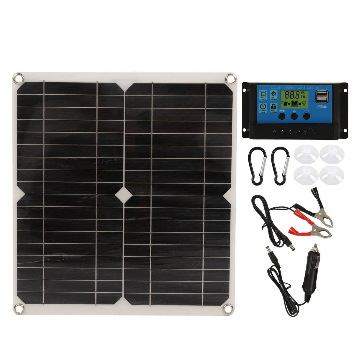 Izstrādāts daudzpusībai, šis panelis var pielāgoties 12V vai 24V sistēmām un nodrošina ērtus izejas punktus: divas USB pieslēgvietas (5V) un DC5521 savienotāju elastīgām uzlādes iespējām. Kompaktais 330 x 360 x 3 mm izmērs ērti iederas transportlīdzekļos, laivās vai šķūņos, nodrošinot uzticamu enerģiju tur, kur tā visvairāk nepieciešama. Lietojumi ietver akumulatorus motocikliem, laivām, traktoriem, piekabēm, kravas automašīnām, zāles pļāvējiem un RV, kā arī vārtu atvērējus, elektriskās žogas, vistas būrus, šķūņus un gaismas.