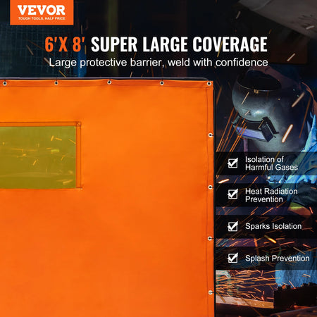 - Visaptveroša aizsardzība: 6' x 8' ekrāns izolē jūsu metināšanas zonu, samazinot dzirksteles, šļakatas, UV iedarbību un siltuma starojumu, lai nodrošinātu drošāku darba vietu.