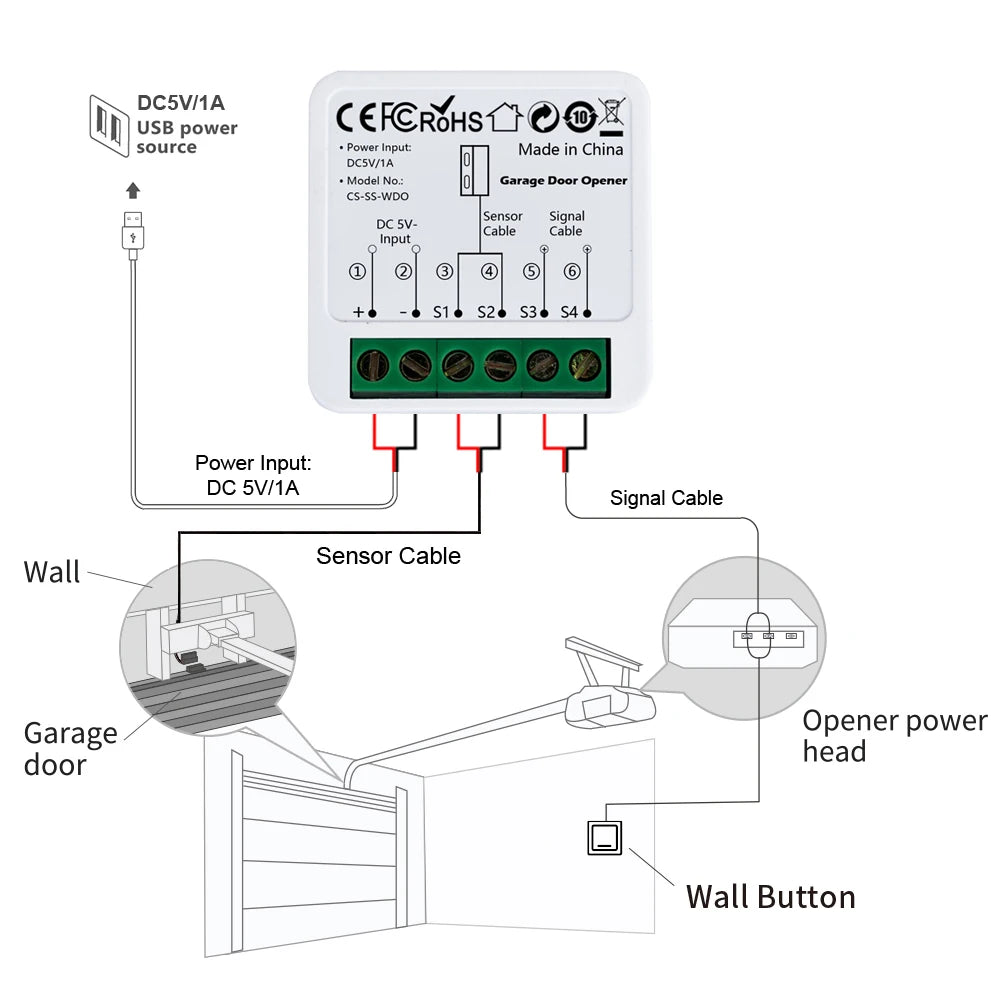 Piezīme: 5V strāvas adapteris nav iekļauts. Pārliecinieties, ka jūsu garāžas kontrolieris ir saderīgs pirms pirkuma.