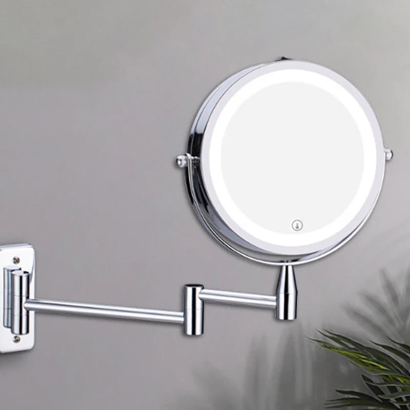 Wall Mounted Folding Arm Mirror LED – 10X Magnification — Elegants, mūsdienīgs, apaļš 6 collu rāmja spogulis ar 10X palielinājumu, divām izstiepjām rokām un iebūvētu LED apgaismojumu precīzai kopšanai un tuvplāna uzdevumiem.