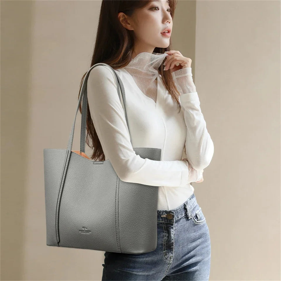 Augstas kvalitātes ādas luksusa sieviešu plecu soma ar dizainera stilu, liela ietilpība somai darbam un ikdienas pārvietošanai