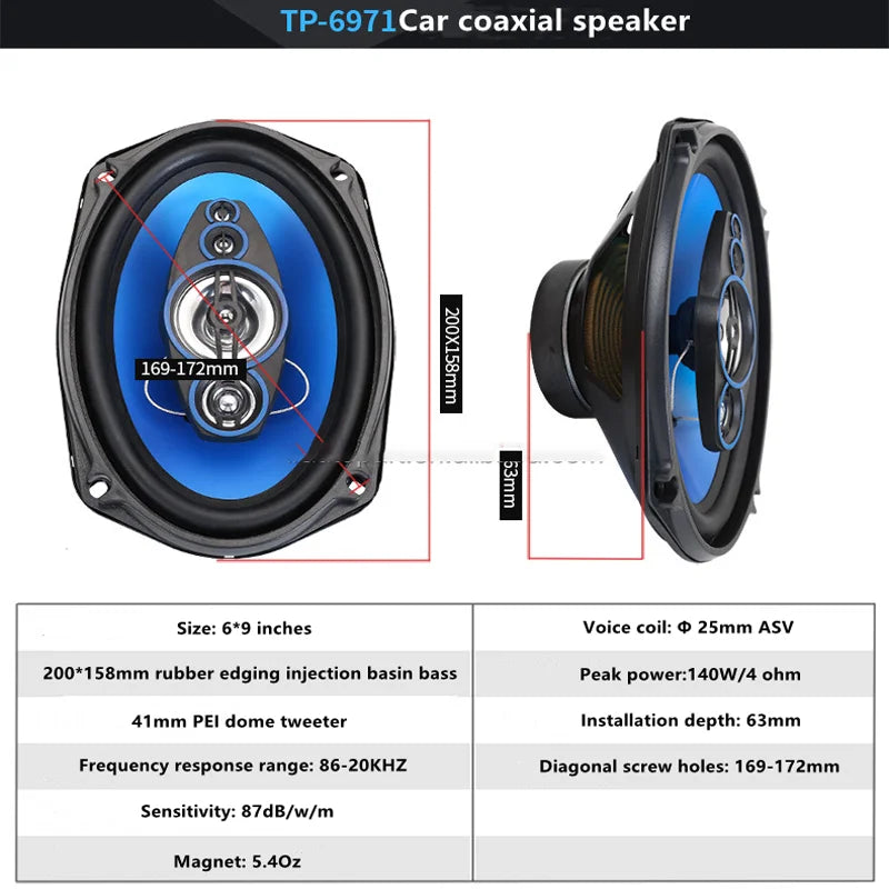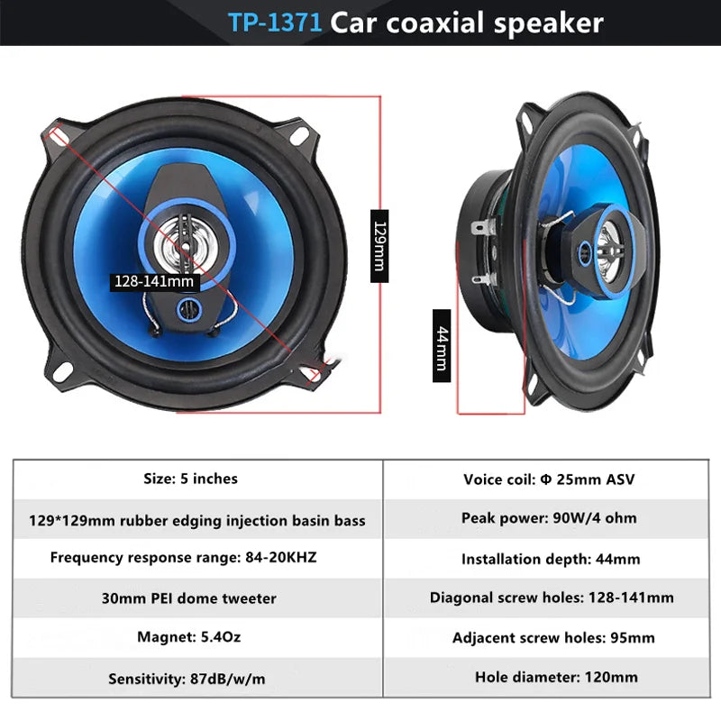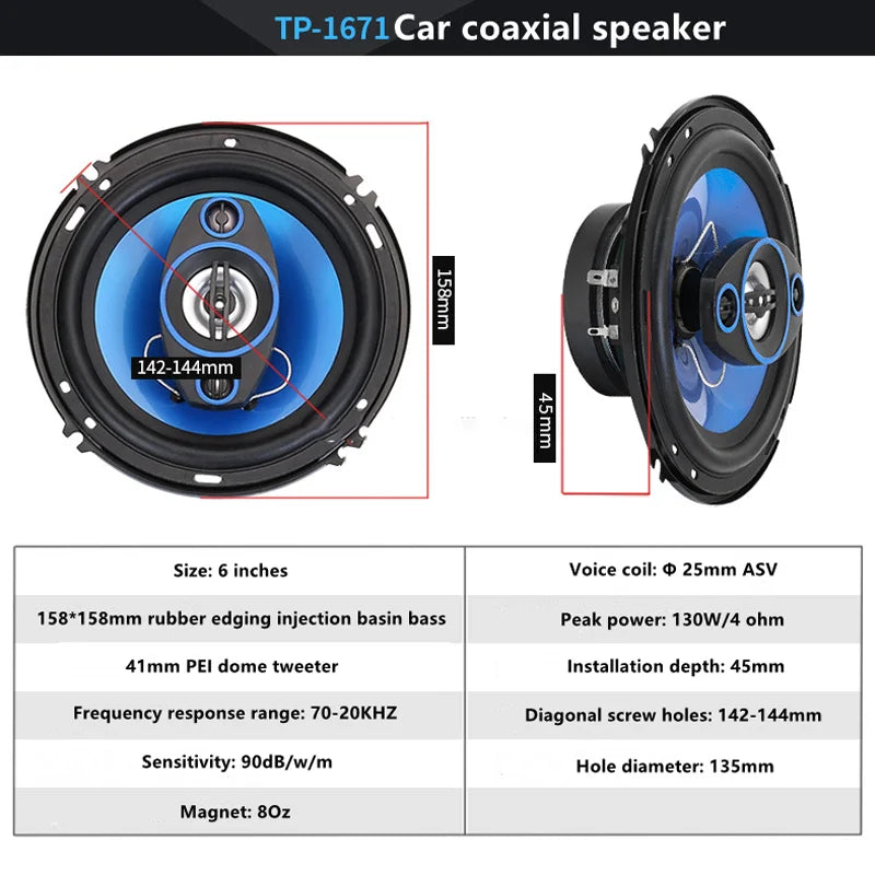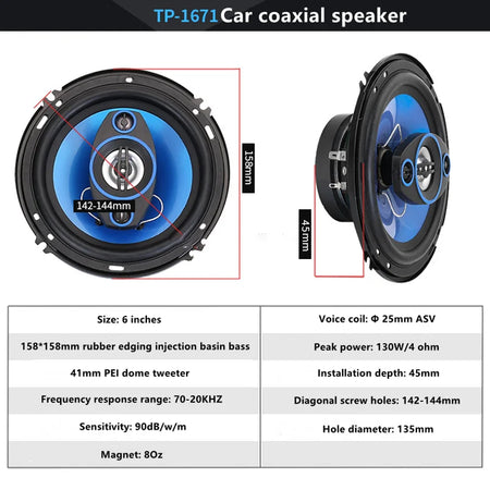 Universele Autospeakers HiFi Coaxiaal, 4 Ohm, 12V, Volledig Bereik