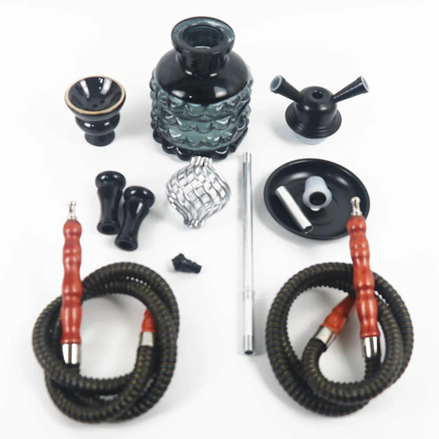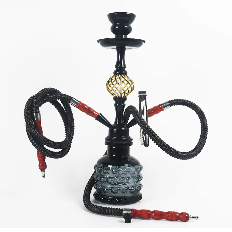 - Arabische Waterpijp Glazen Fles Set met Dubbele Pijp en Enkele Pijp componenten.