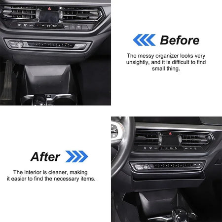 Upgrade uw BMW-interieur met de Bmw 1 2 Serie Middenconsole Opbergtray in ABS Zwart. Deze aftermarket middenconsole organizer is op maat gemaakt voor BMW 1 Serie en 2 Serie modellen (F40/F44) van 2020 tot 2024. Gemaakt van hoogwaardig ABS-kunststof in een strak zwart design, biedt het een speciale ruimte voor uw mobiele telefoon, munten, sleutels en andere kleine benodigdheden, waardoor de cockpit netjes blijft en binnen handbereik is. De tray wordt snel geïnstalleerd met vooraf aangebrachte dubbelzijdige lijm—geen boren of aanpassingen nodig. Ontworpen om strak in het centrale bedieningsgebied te passen, helpt het rommel en afleiding te verminderen, waardoor dagelijkse ritten comfortabeler en georganiseerder worden. Gefabriceerd in een ISO9001-gecertificeerde fabriek, is de kwaliteit consistent en wordt wereldwijd geëxporteerd.