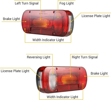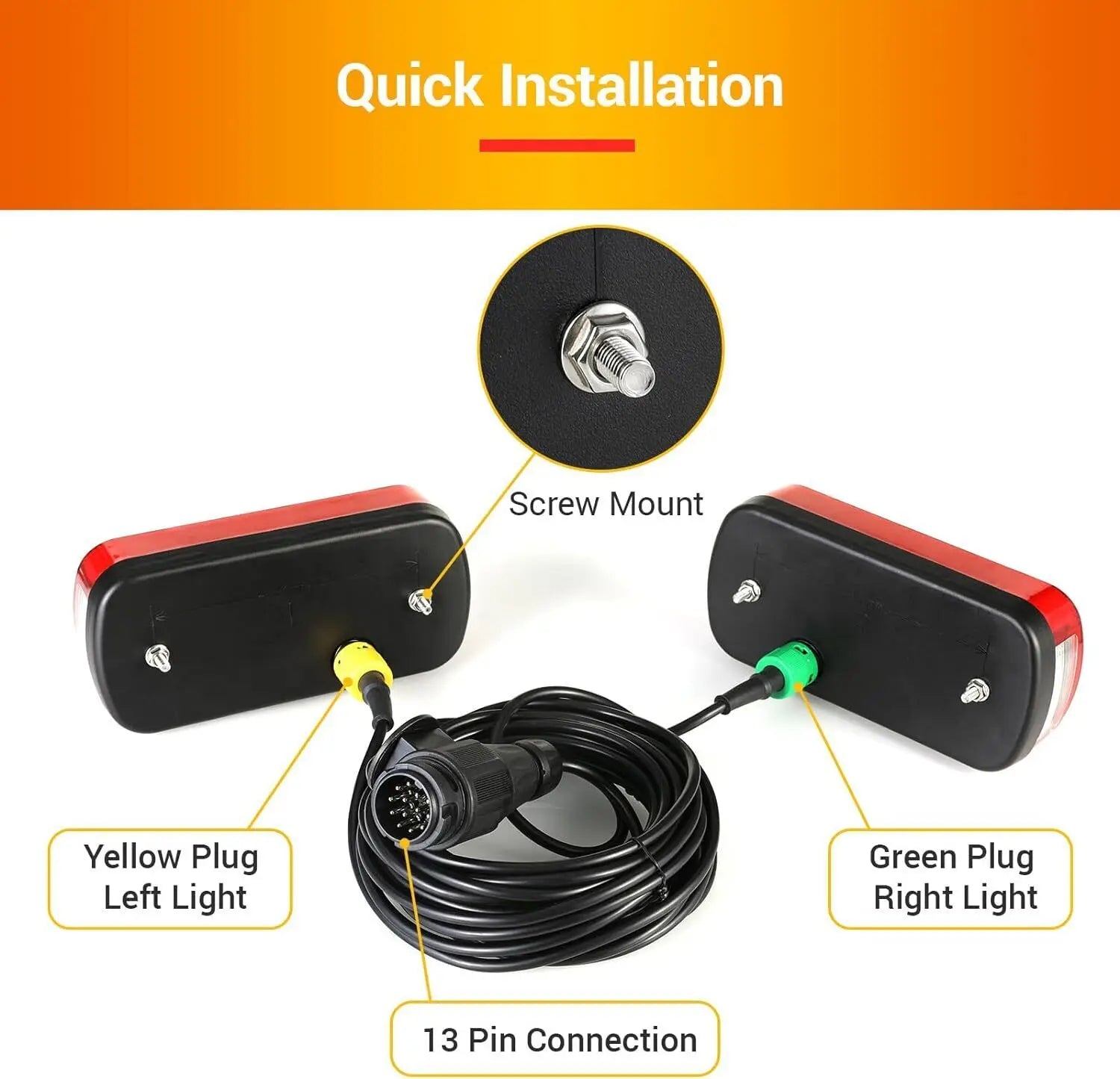 - Praktisch gebruik: Gebruik als primaire signaallichten voor het trekken of als vervanging voor verouderde aanhangerlichten om de zichtbaarheid bij regen, mist of schemering te verbeteren.