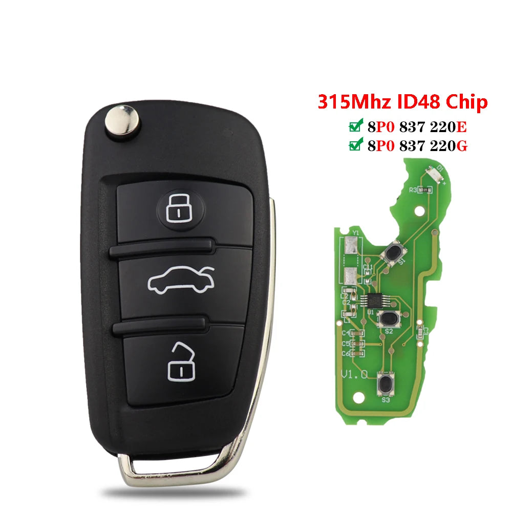Afstandsbediening Sleutel voor Audi Q7 met 315/433MHz ID48 Chip, 3-Knop, Hoge Kwaliteit