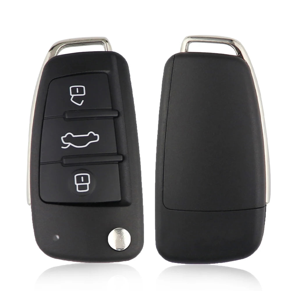 Dit is een premium vervangende afstandsbediening sleutel ontworpen voor Audi voertuigen. Het wordt geleverd als een complete, gebruiksklare sleutel inclusief behuizing, printplaat, chip en batterij, waardoor het een praktische oplossing is voor een versleten of verloren sleutel. De sleutel ondersteunt zowel 315MHz als 433MHz frequenties en bevat een ID48 transponderchip, wat zorgt voor compatibiliteit met een breed scala aan Audi modellen. Het is gemaakt van duurzaam ABS, metalen componenten en een robuuste printplaat om dagelijks gebruik te weerstaan terwijl het kleurvast en geurvrij blijft.