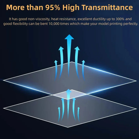 Ontdek de ACF Film Release 5Pcs 7 Inch 235x160mm voor Mars 4 Ultra — een hoogwaardige, duurzame afdrukfilm ontworpen voor moderne UV-harsprinters. Deze 0,3 mm dikke ACF-film is een verbeterd alternatief voor NFEP, ontworpen om viscositeitsproblemen te verminderen en betrouwbaar te presteren bij snellere printsnelheden op Mars 4 Ultra, Mars 5 Ultra en een breed scala aan Elegoo en Phrozen-printers. Met een indrukwekkende lichttransmissie van 95% levert de film heldere, scherpe laagbelichting en beschikt het over uitstekende flexibiliteit en ductiliteit. De robuuste constructie ondersteunt dagelijks gebruik, weerstaat slijtage en hitte (tot 260°C zonder te smelten, tot 304°C met nieuwere materialen), wat zorgt voor langdurig printsucces en minder mislukte experimenten.