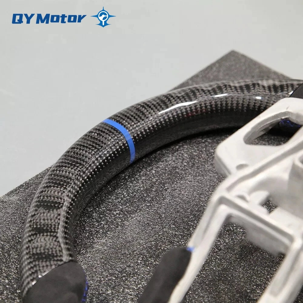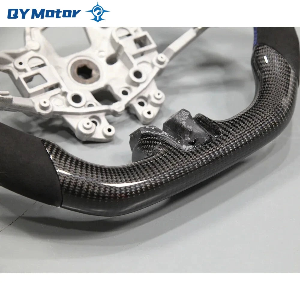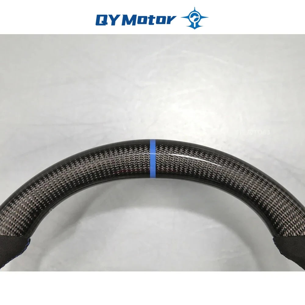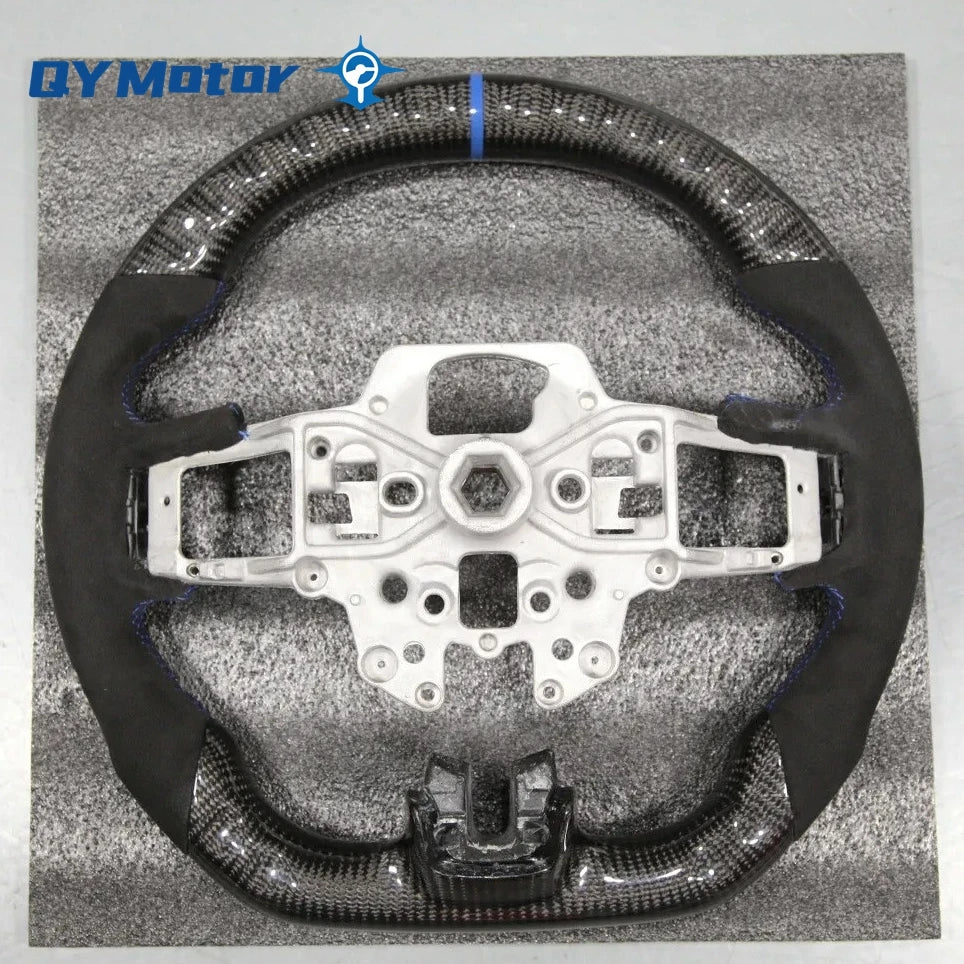 Materialen zijn onder andere koolstofvezel en Alcantara leer, met een koolstofvezel kleur zoals weergegeven in de productafbeeldingen en zwart leer op de grip. De stiksels zijn blauw om een gedurfde interieuraccent toe te voegen. De vorm van het stuurwiel is Ronde Top & Platte Bodem voor een agressief, prestatiegericht gevoel en gemakkelijkere controle tijdens sportief rijden. Paddle uitsparingen zijn inbegrepen (Paddles zijn niet inbegrepen). Het stuurwiel is standaard niet verwarmd; als je de verwarming wilt behouden of toevoegen, neem dan contact met ons op. Dit is een gepersonaliseerd product met een bouwtijd van 15 dagen, en als we voorraad beschikbaar hebben, zullen we eerder verzenden. Geschikt voor 2015-2023 Ford Mustang GT. Voor compatibiliteit kun je een foto van je originele stuurwiel sturen en we zullen je begeleiden.