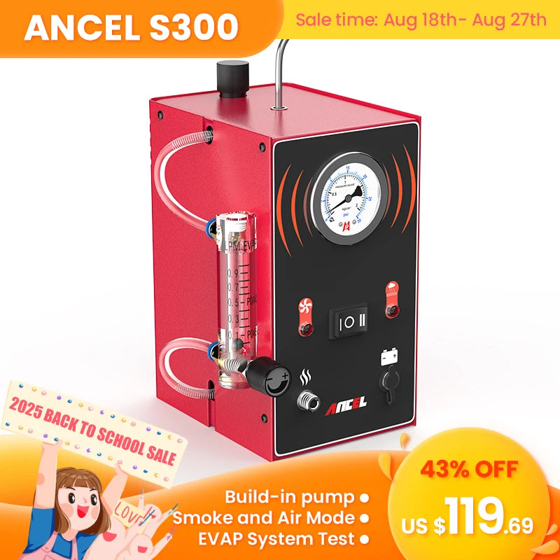 ANCEL S300 Auto Rooklek Detector - Ingebouwde Luchtpomp — een compacte, draagbare rookgenerator ontworpen om pijp- en vacuümlekken snel te lokaliseren met een betrouwbare ingebouwde luchtpomp en veiligheidskenmerken voor autodiagnostiek.