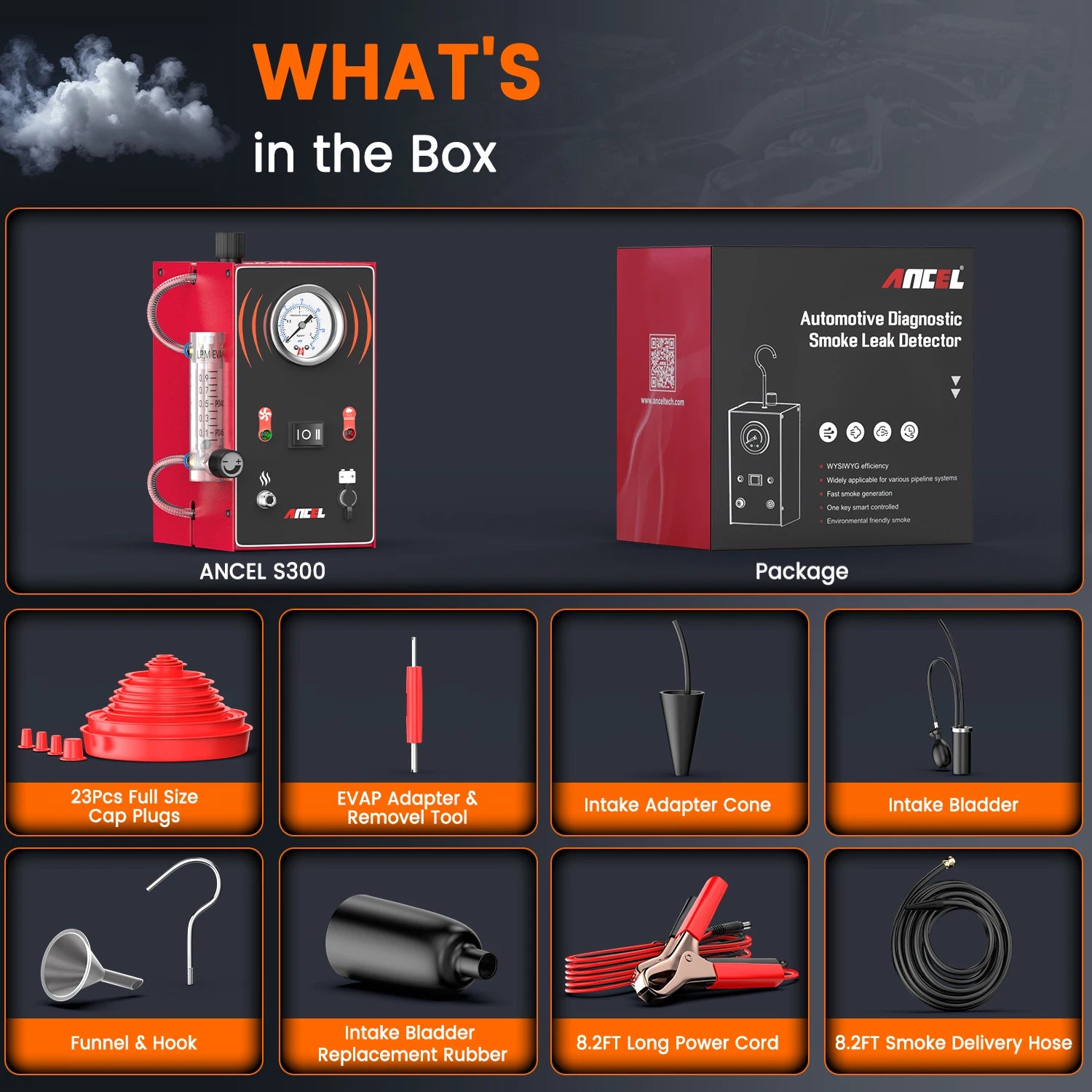 Wat is inbegrepen: ANCEL S300 eenheid, stroom- en slangaccessoires, gebruikershandleiding.