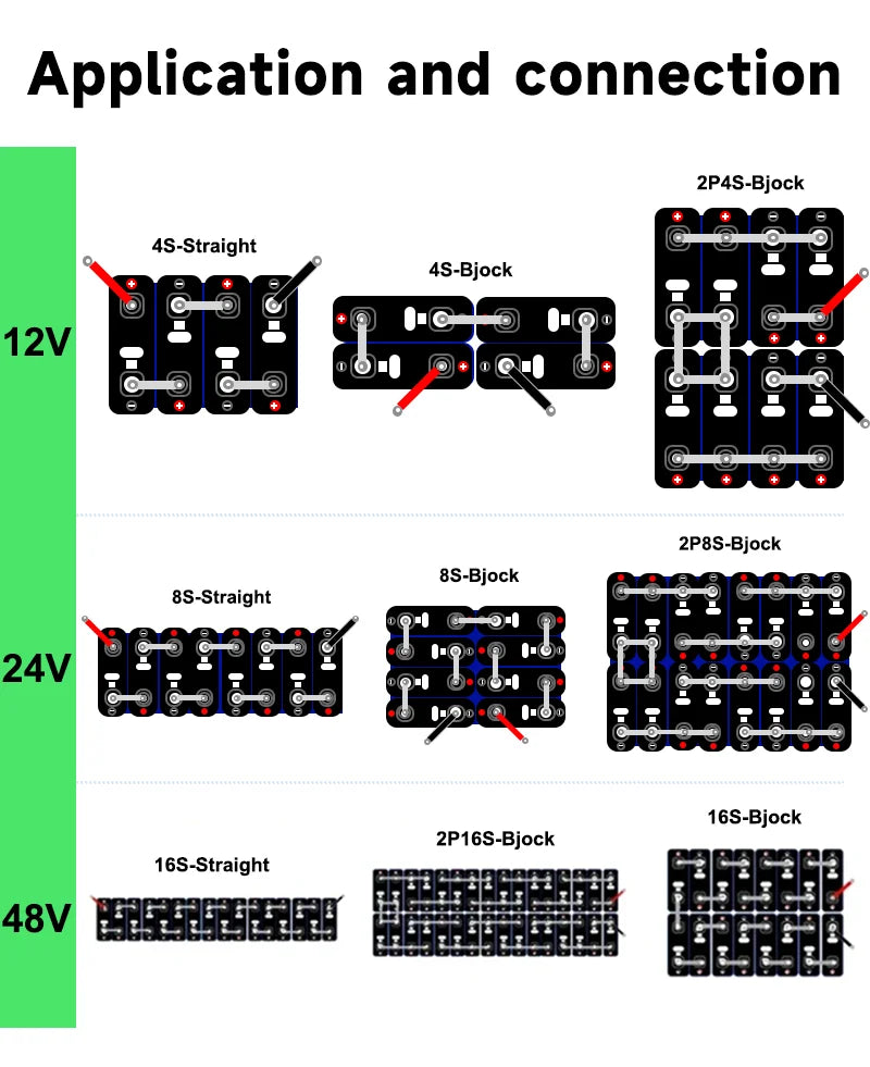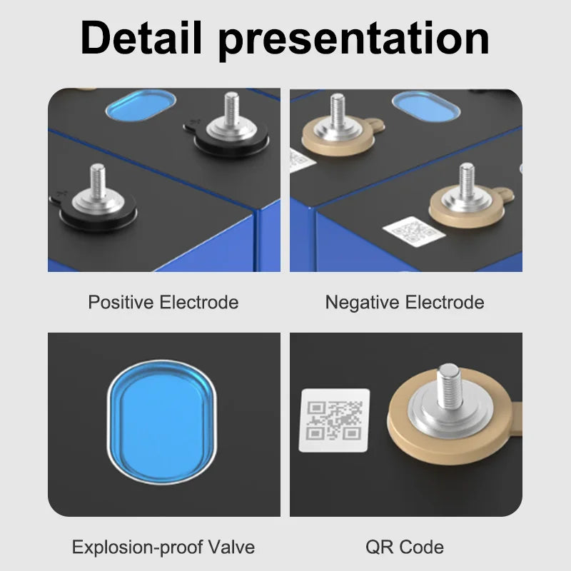- Te gebruiken met een compatibel batterijbeheersysteem (BMS) en juiste bedrading geschikt voor 12V/24V/48V doe-het-zelf energieopslagconfiguraties.