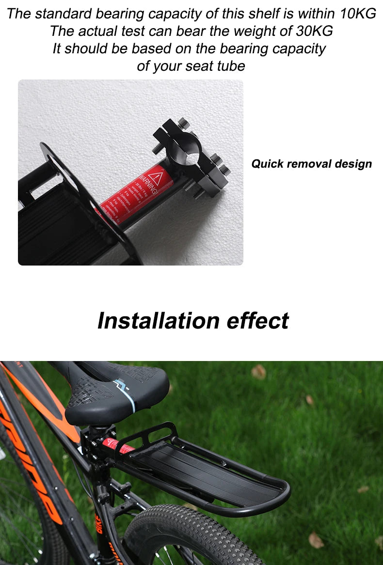 Fietsendrager met 30 kg capaciteit — een bagagedrager van aluminiumlegering ontworpen voor mountainbikes. Vergroot uw draagcapaciteit zonder extra volume toe te voegen, perfect voor weekendtrips, bikepacking of dagelijks woon-werkverkeer. Gemaakt van duurzaam aluminiumlegering, biedt het stevige ondersteuning en corrosiebestendigheid terwijl het gewicht licht blijft. De 30 kg laadcapaciteit geeft u gemoedsrust bij het vervoeren van gereedschap, kleding, water of kleine fietstassensets. Compatibel met de meeste framebevestigingen, integreert deze drager soepel met standaard fietsconfiguraties en ondersteunt accessoires zoals fietstassen of achtertassen voor veelzijdige opslag.