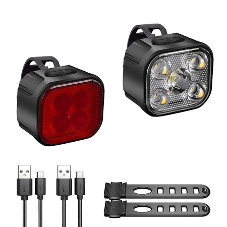 Bucklos 272 Fietslampen Type C Oplaadbaar Voor- en Achterlicht, IPX6 ABS