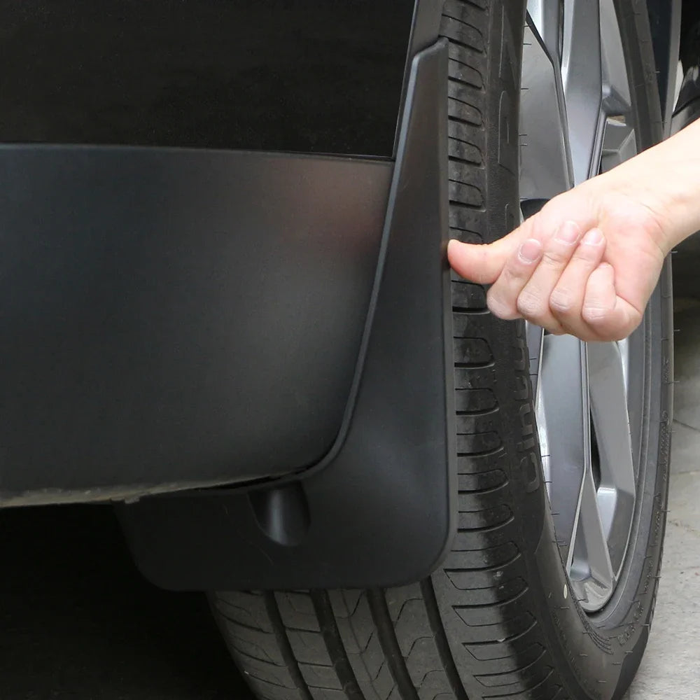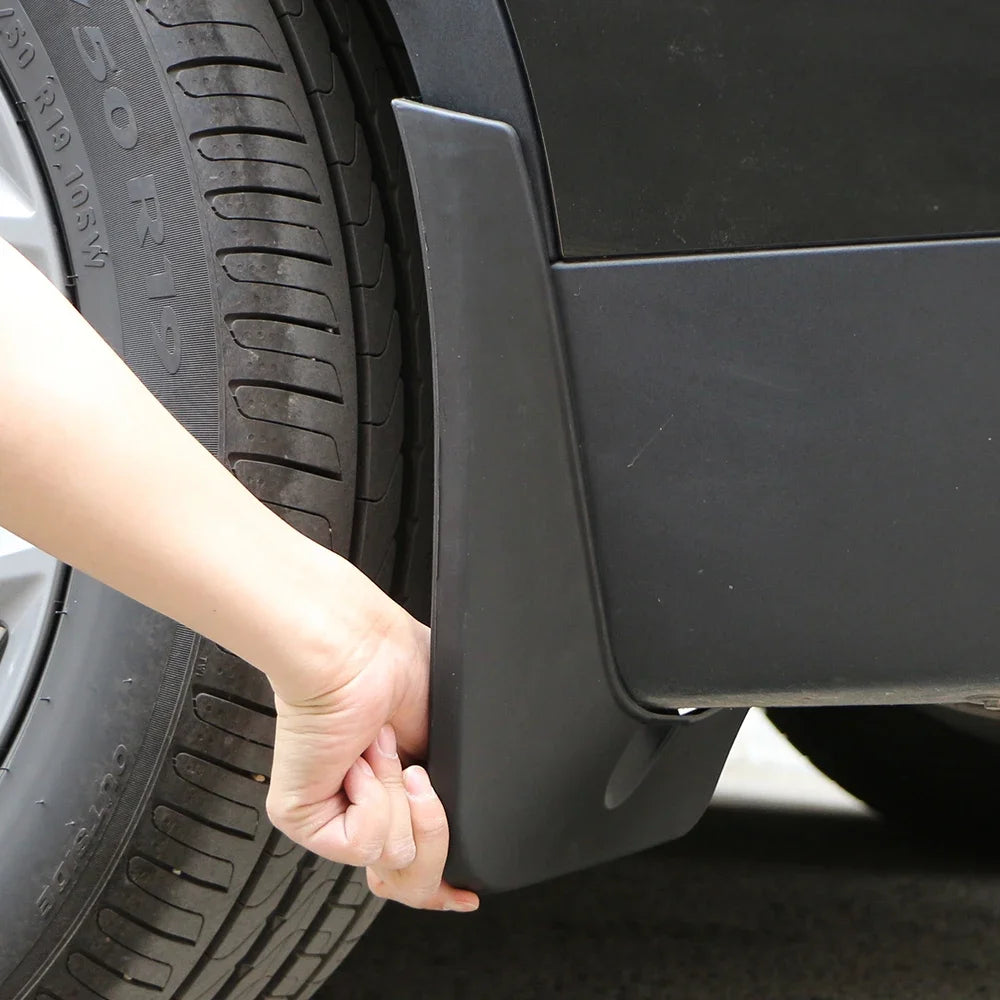 Deze spatborden helpen opspattend water en steenslag te verminderen, waardoor het uiterlijk van uw bumper en spatbordranden behouden blijft en de algehele netheid van het voertuig tussen wasbeurten verbetert. Hun klassieke zwarte afwerking sluit naadloos aan bij de lijnen van de BMW en biedt een discreet, robuust accent aan uw SUV.