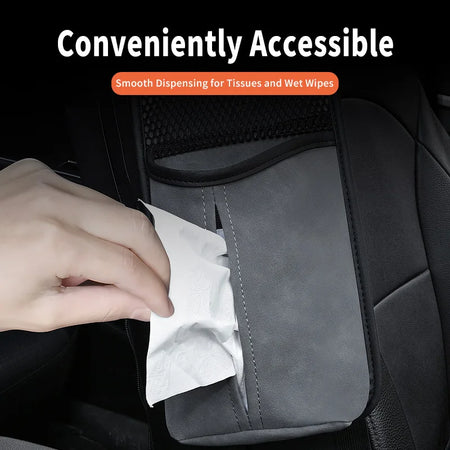 Autostoel Organizer PU Leer Met Zakdoekhouder, Verstelbare Zijopbergzak