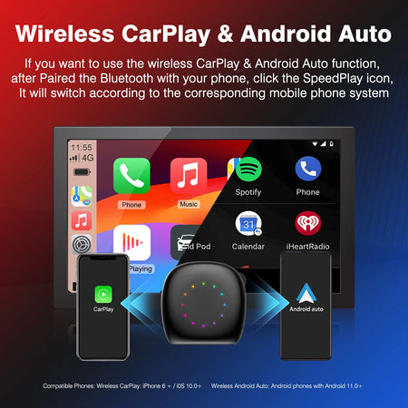 - 2-in-1 connectiviteit: zet bedrade CarPlay om in draadloze CarPlay en schakel draadloze Android Auto in voor een schoner, kabelvrij dashboard.