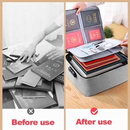 Choice Brand Document Storage Bag – Multi-Layer Grote Capaciteit (37x18x28 cm, Grijs, 600D Oxford-stof)