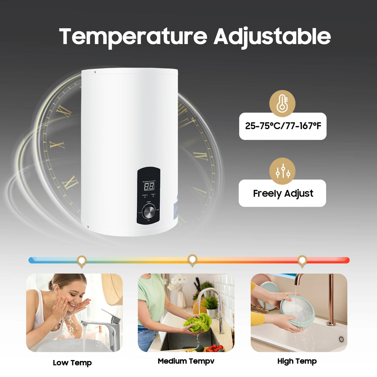 Ontdek het gemak van direct warm water met onze Elektrische Doorstroomwaterverwarmer met een LED-display. Deze moderne, witte kolomverwarming is ontworpen voor snelle en efficiënte verwarming, perfect voor huizen waar je warm water op aanvraag nodig hebt zonder te wachten. Aangedreven door 220V en 2kW, gebruikt het geavanceerde technologie om temperaturen van 25-75°C te regelen, waardoor veelvoorkomende problemen zoals inconsistente watertemperaturen of energieverspilling in traditionele systemen worden opgelost. Gemaakt van duurzaam roestvrij staal, emaille en kunststof, is het gebouwd voor een lange levensduur en eenvoudige verticale montage, waardoor het een ruimtebesparende oplossing is voor badkamers of keukens.
