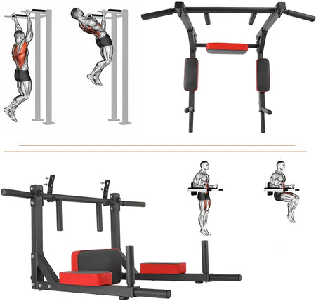 - Versterk de kracht van het bovenlichaam met pull-ups, chin-ups en dips met een enkele, stabiele aan de muur gemonteerde unit.