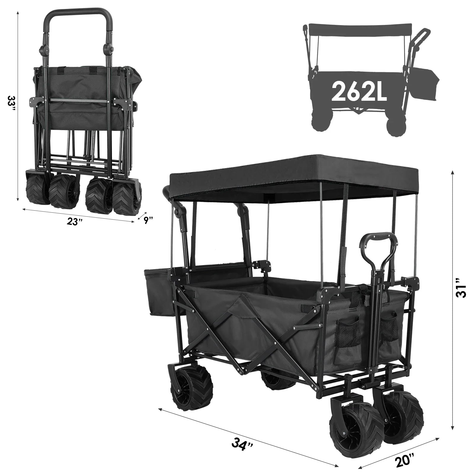 - Opgevouwen afmeting: 33 x 9 x 23 inch (H x B x L)