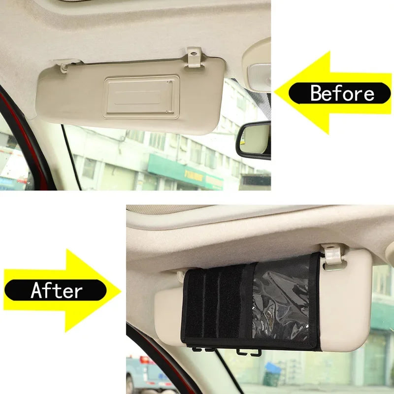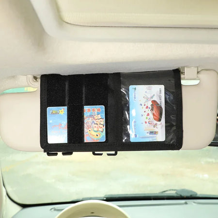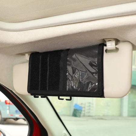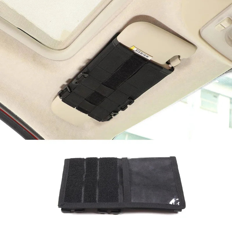 - Praktische opslag: berg zonnebrillen, kaarten, pennen, oplaadkabels en andere kleine items binnen handbereik op uw zonneklep op.
