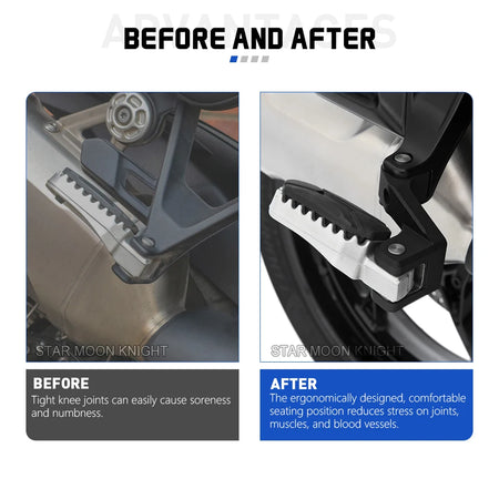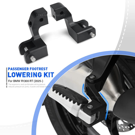 Verhoog het comfort van uw passagiersritten met de BMW R1300RT Passagiers Voetsteun Verlagingsset Aluminium van Star Moon Knight. Speciaal ontworpen voor de BMW R1300RT (2025-), verlaagt deze set de passagiersvoetsteunen met ongeveer 45 mm, waardoor de kniehoek wordt vergroot en een ontspannen, natuurlijke zithouding ontstaat. Het ergonomische ontwerp vermindert de belasting van de knieën, spieren en bloedvaten, waardoor u langer kunt rijden met minder vermoeidheid. Gemaakt van hoogwaardig aluminium en nauwkeurig gefreesd op CNC-machines, zijn de voetsteunen verkrijgbaar in hoogwaardig zwart of zilver geanodiseerde afwerkingen die passen bij het uiterlijk van uw motorfiets. De set wordt gemonteerd op de standaard bevestigingsbeugel met een complete montagemontageset inbegrepen, wat zorgt voor een eenvoudige, compromisloze upgrade voor comfort op lange afstanden.