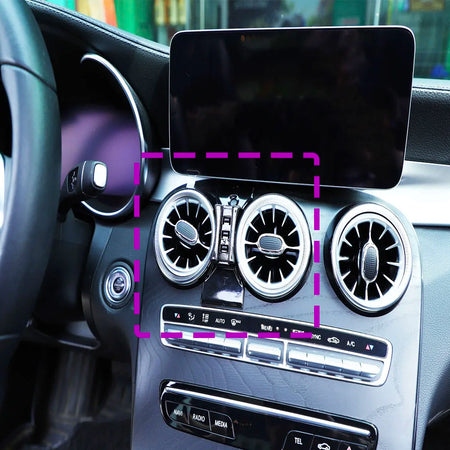 Verbeter uw rijervaring met de Mercedes GLC Auto Telefoonhouder Met Draadloze Oplaadbasis. Gemaakt van duurzaam ABS, deze standaard combineert een veilige grip met handige stroomvoorziening, zodat uw telefoon binnen handbereik blijft en klaar is voor elke rit. De basis is speciaal aangepast voor het Mercedes GLC-model, wat zorgt voor een snug, exacte pasvorm die harmonieert met het interieur van uw auto. Zorg ervoor dat uw voertuig overeenkomt met het weergegeven model om perfecte compatibiliteit te garanderen. De 17mm draaikoppeling laat u kantelen en draaien voor de optimale kijkhoek, of u nu GPS gebruikt, streamt of onderweg oproepen doet. Wanneer gemonteerd, wordt uw telefoon draadloos opgeladen terwijl u rijdt, waardoor kabelrommel wordt verminderd en batterijangst wordt geëlimineerd.