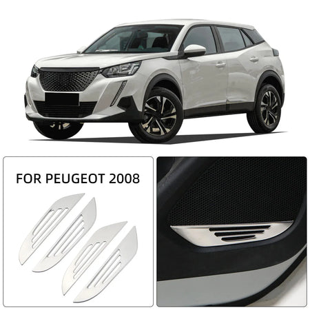 Peugeot 2008 2019-2023 Deur Speaker Afwerking 4-delige Set, Roestvrij Staal, Zilver