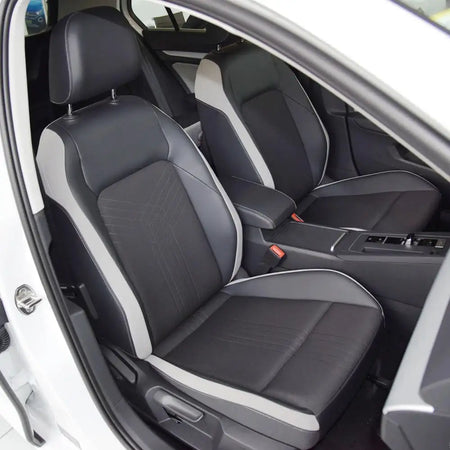 Bescherm en verfris het interieur van uw VW Golf 8 MK8 met deze volledige set van neplederen stoelhoezen. Gemaakt als een 5-zitplaatsen compleet pakket, bieden deze op maat gemaakte autostoelhoezen in kunstleer duurzaamheid, een premium uitstraling en eenvoudig onderhoud gedurende alle seizoenen. Ontworpen om te passen bij de VW Golf 8 MK8, brengen ze een samenhangende, luxe sfeer in uw cabine terwijl ze de originele bekleding beschermen tegen morsen, slijtage en dagelijks gebruik.