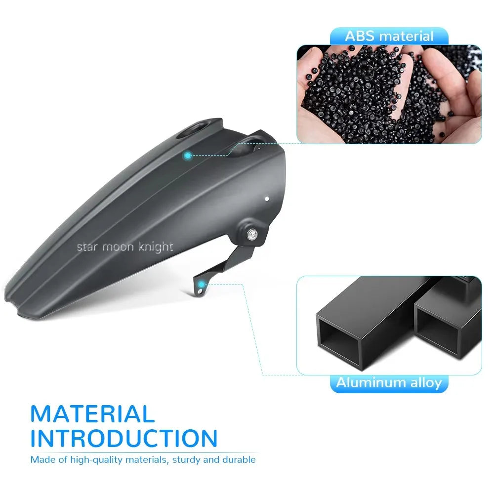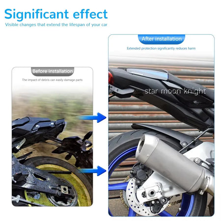- Vermindert vuil- en waterspatten van het achterwiel, waardoor de motor schoner blijft en uw rit soepeler verloopt bij natte omstandigheden.