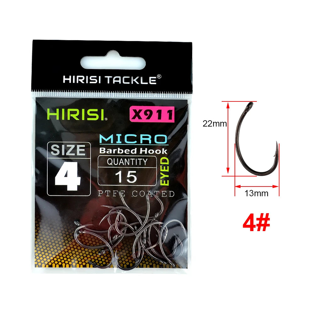 Introductie van de Hirisi 15Pcs PTFE Coated High Carbon Barbed Hooks With Eye, een betrouwbare set ontworpen voor karpervissen in rivieren. Gemaakt van hoog koolstofstaal en afgewerkt met een beschermende PTFE-coating, bieden deze haken sterkte, corrosiebestendigheid en soepele penetratie, waardoor je met vertrouwen meer vissen kunt vangen.