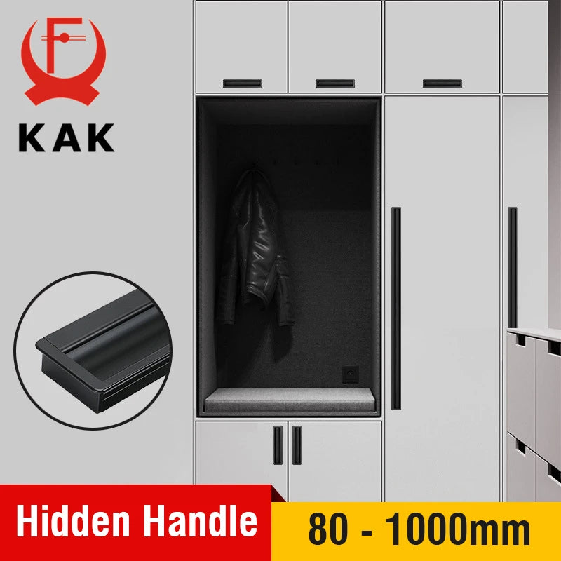 Kak Aluminium Legering Zwarte Ingebedde Keuken Deurhendel 80mm