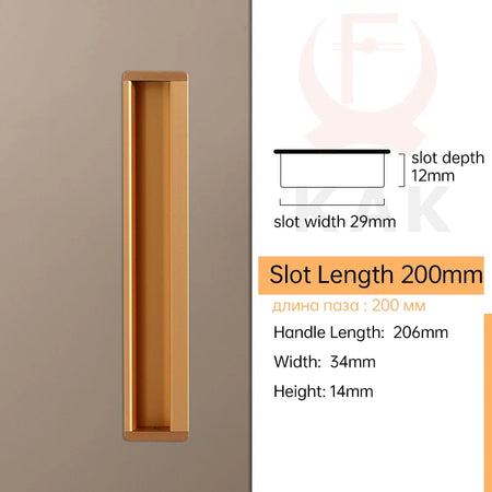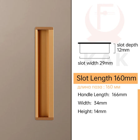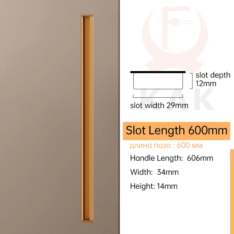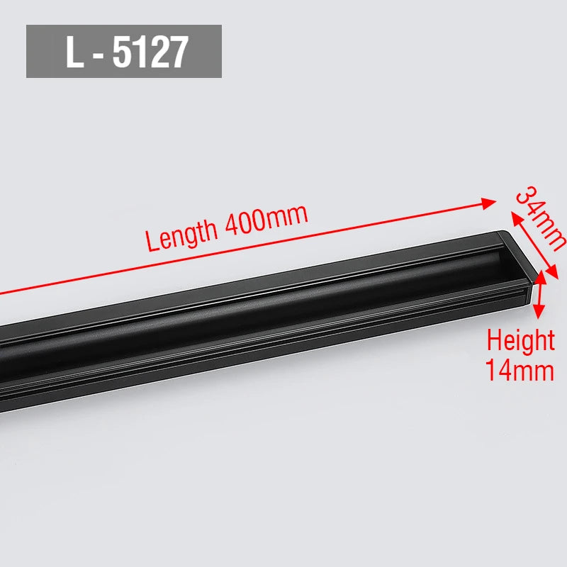 - Moeiteloze, schroefvrije installatie: sleufontwerp stelt u in staat om de greep in te bouwen zonder zichtbare schroeven, wat een nette, moderne uitstraling geeft.