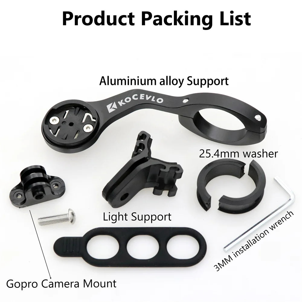 KOCEVLO aluminium voorste wegfietscomputer- en camerabevestiging past op GoPro Garmin verlengde stuurbeugel