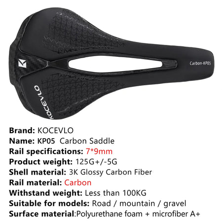 - 1 x Kocevlo KP05 Ultralight Full Carbon Racefiets Zadel (125g)