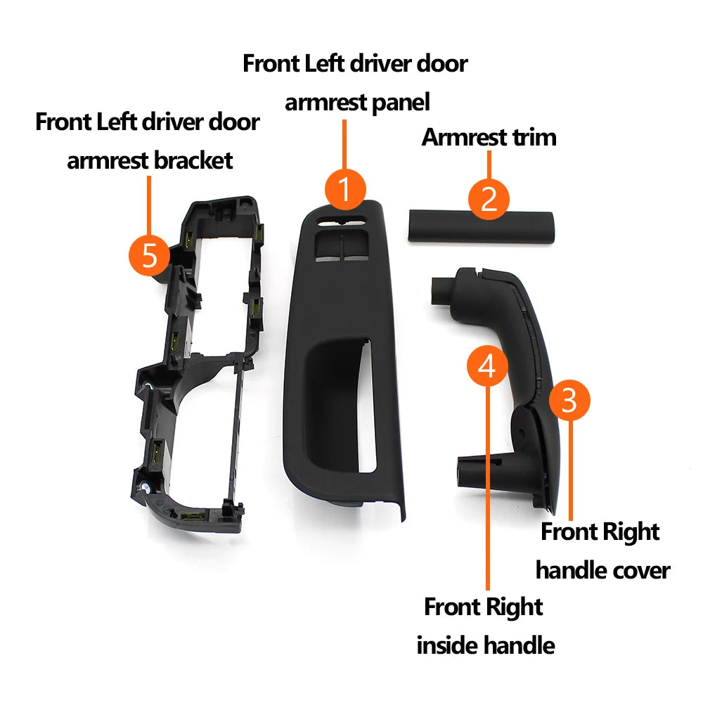 - OE Nr. (kleur-specifiek): Zwart — Voorste linker armsteun paneel 3B1867171DA94; Voorste linker armsteun paneel beugel 1J1867179A; Voorste rechter deurhendel 1J0867180AA94 | Beige — Voorste linker armsteun paneel 3B1867171DR48; Voorste linker armsteun paneel beugel 1J1867179A; Voorste rechter deurhendel 1J0867180AR48 | Grijs — Voorste linker armsteun paneel 3B1867171D7DE; Voorste linker armsteun paneel beugel 1J1867179A; Voorste rechter deurhendel 1J0867180A7DE