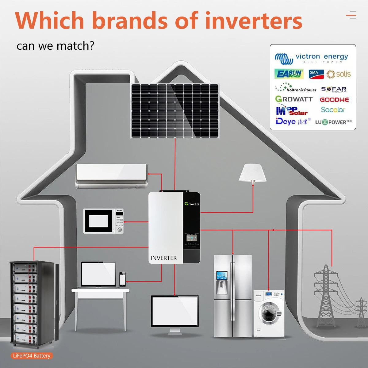 - Gebruik alleen met compatibele omvormers en volg alle veiligheidsrichtlijnen voor LiFePO4-energieopslagsystemen.