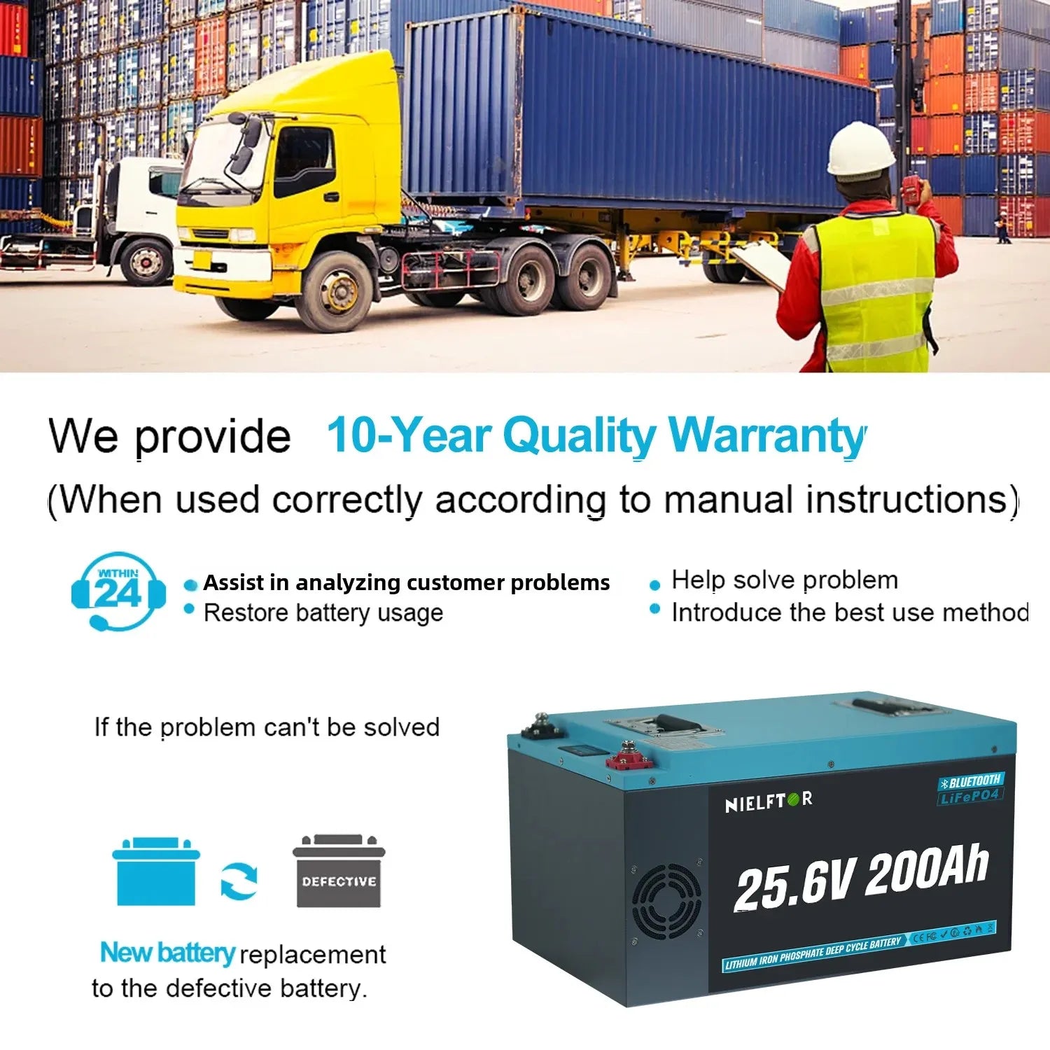 - Modelreferenties: 25,6V 200Ah LiFePO4-pakket (voorbeeld), 12V 100Ah/200Ah/300Ah LiFePO4-batterij, 24V 100Ah/300Ah LiFePO4-batterij