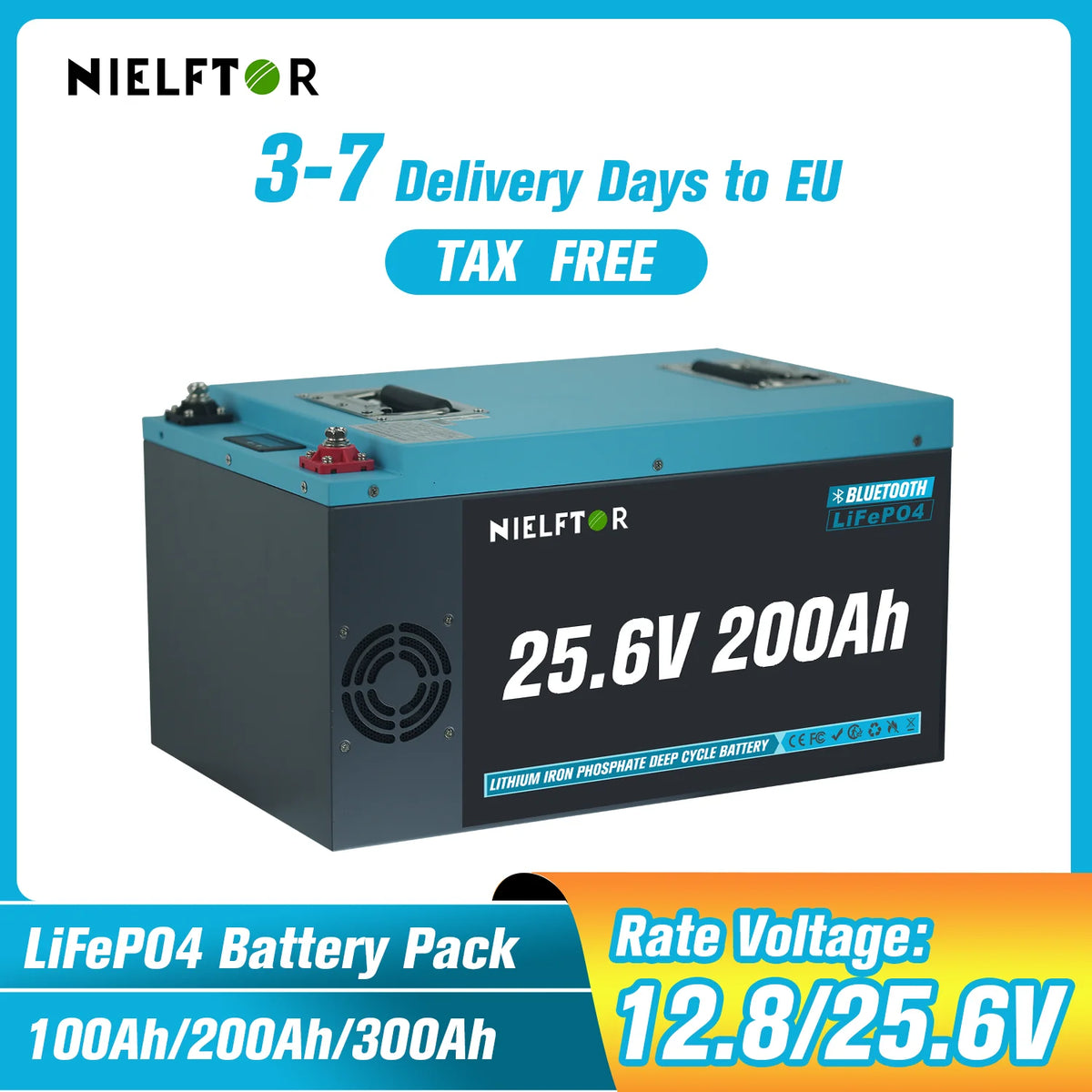 LiFePO4 Batterijpakket 12V 24V 48V 100Ah 200Ah 300Ah Ingebouwde BMS Cellen van Klasse A 6000 Plus Cycli EU Voorraad