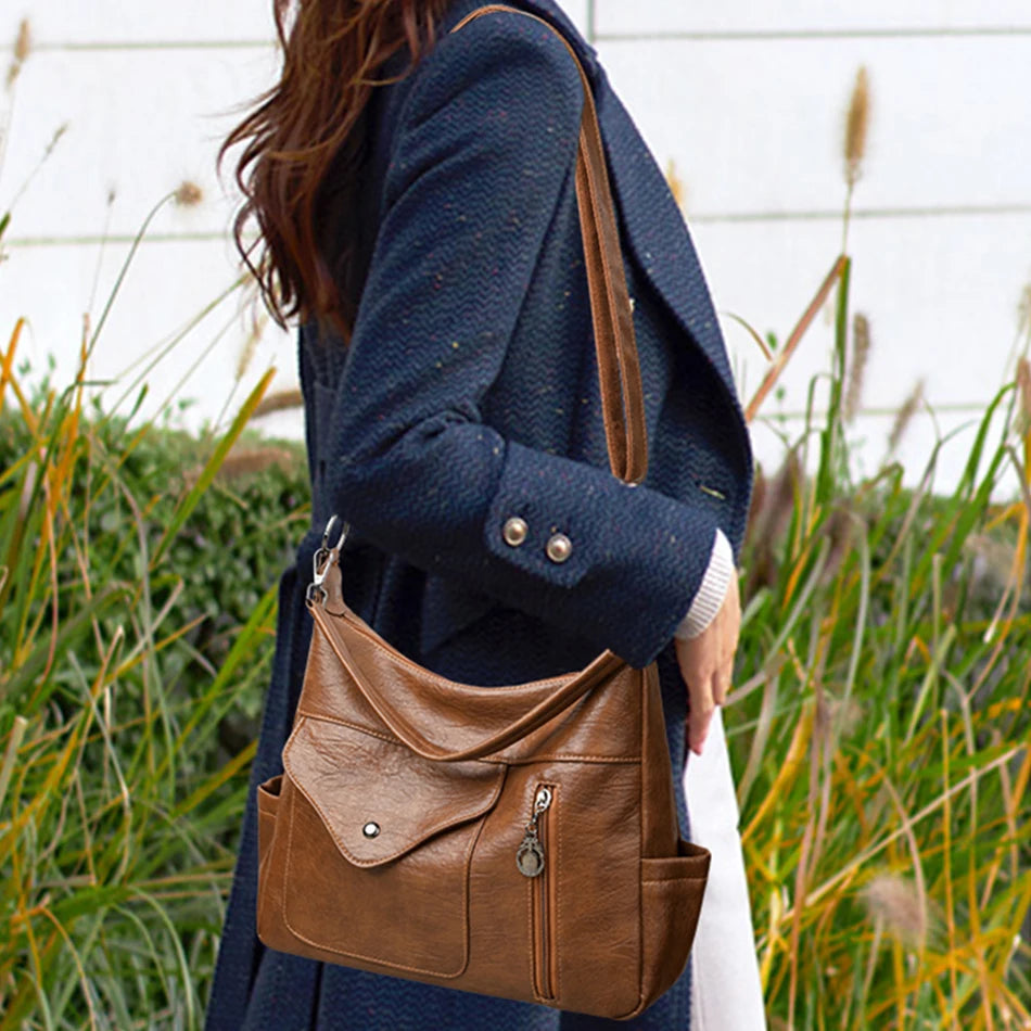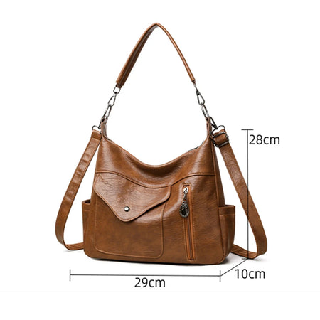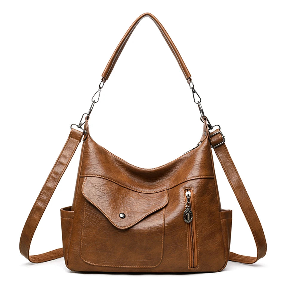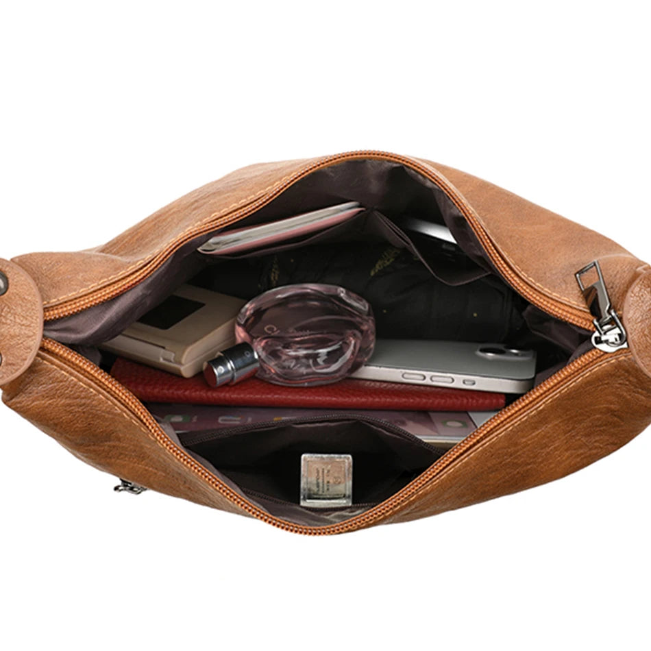 - 1 x Luxury Large Capacity Crossbody Bag voor dames in PU-leer — Retro designer tote met binnenvakken