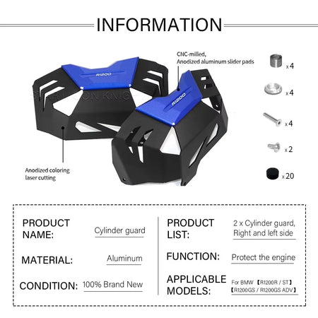 BMW R1200GS, R1200GS Adventure, R1200R, R1200ST motorbeschermers cilinderkopbeschermer aluminium