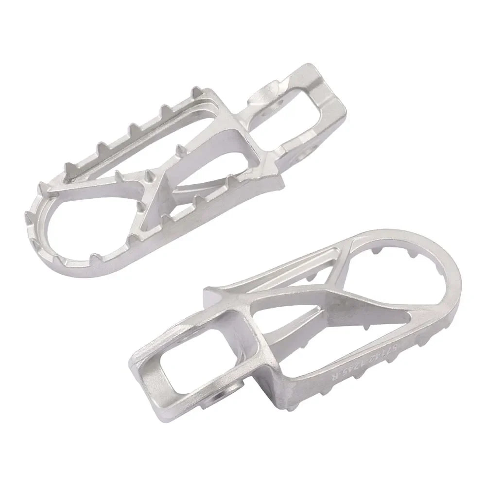GasGas EC 300 voetsteunen, roestvrijstalen voorste voetsteunen bieden robuuste duurzaamheid en betrouwbare grip voor serieuze off-road rijders. De gesmede roestvrijstalen constructie zorgt voor uitzonderlijke sterkte en corrosiebestendigheid, terwijl de geharde stalen tanden slijtvast zijn voor langdurige prestaties. De tanden zijn verwijderbaar en vervangbaar, wat onderhoud snel en betaalbaar maakt, en de installatie is eenvoudig zonder meegeleverde instructies.
