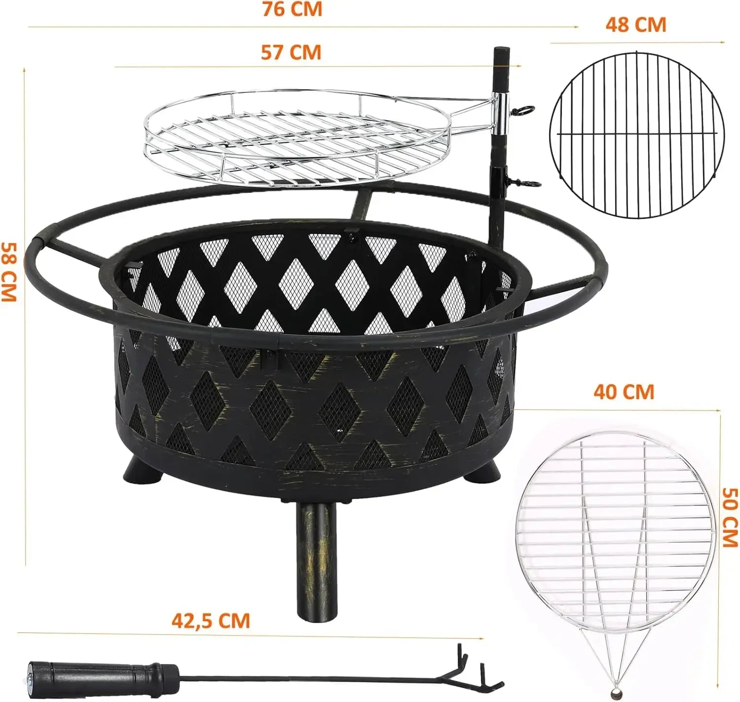 - 1x multifunctionele vuurkorf vuurkom met vonkenscherm en grillrooster, in hoogte verstelbaar