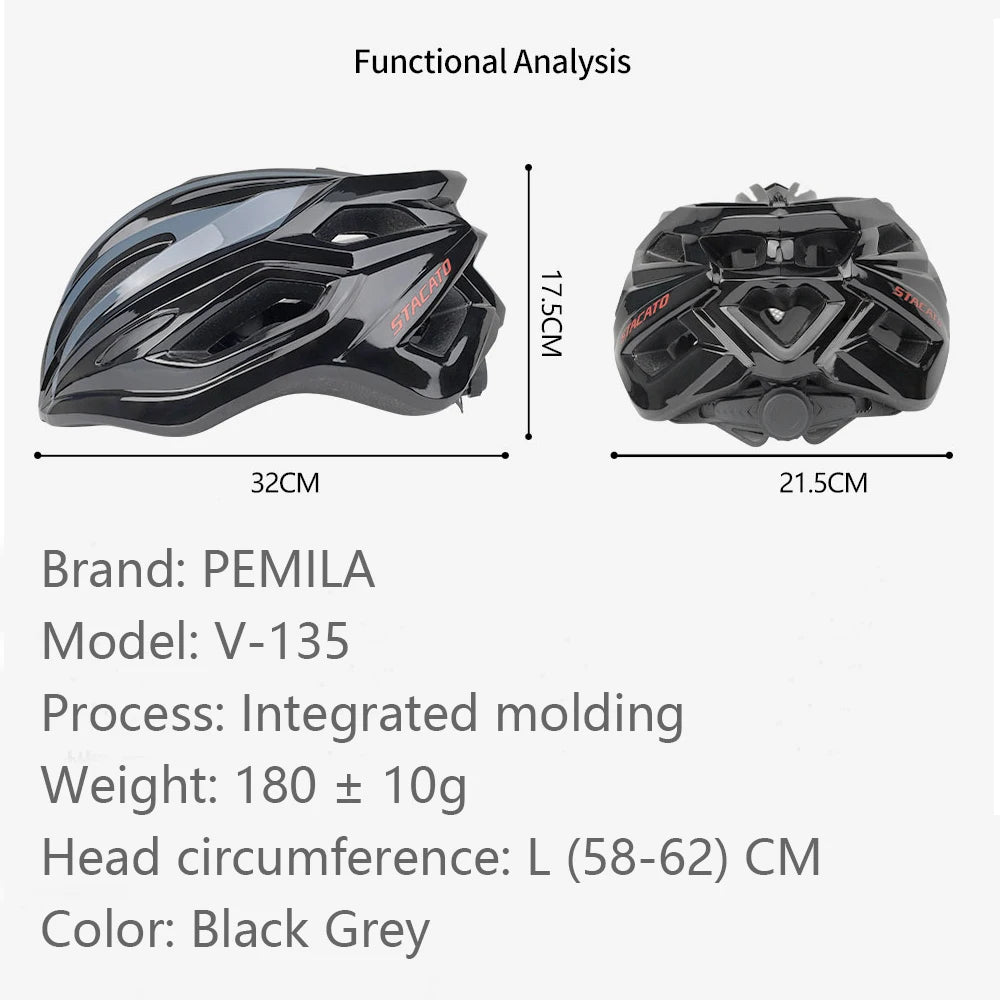 PEMILA Ultralight Cycling Helmet for Men and Women is built for speed, safety, and comfort. Weighing just 180 g, this adult helmet uses an integrated molding process and an EPS safety shell for a light, durable ride companion on road, trail, or commuting. The V-135 model offers a streamlined silhouette and a head circumference range of 58–62 cm, with 16–20 air vents to maximize ventilation during climbs or hot days. CE certified and crafted in Mainland China, this helmet blends everyday practicality with performance for both women and men.