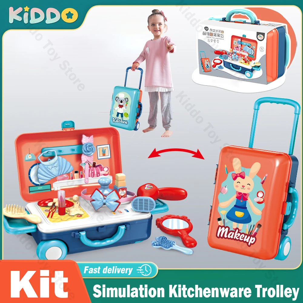 Draagbare Trolley Koffer Kinderen Keuken Speelgoed Set met ABS Plastic