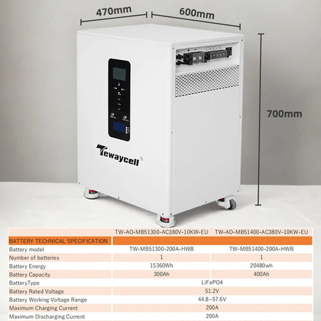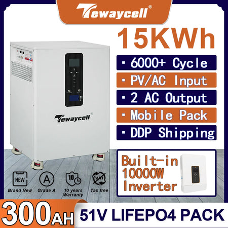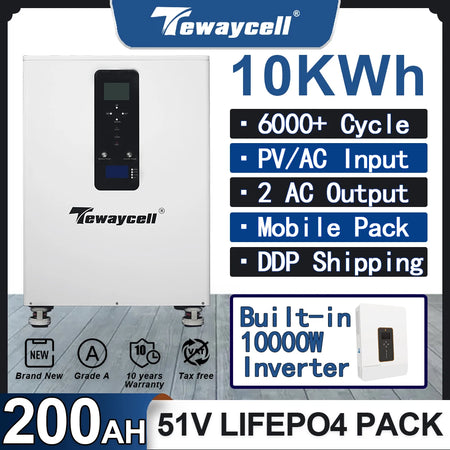 Maak kennis met het Tewaycell LiFePO4 Powerwall 20480Wh 51,2V 400Ah batterijpakket met ingebouwde BMS en 10kW-omvormer — een hoogcapacitatieve thuisenergieopslagoplossing ontworpen om uw huis van stroom te voorzien met zonne-energie of netstroom. Dit geïntegreerde systeem combineert een robuuste LiFePO4-batterij, een ingebouwd beheersysteem en een krachtige omvormer in één compact pakket, waardoor het ideaal is voor noodstroom, piekafvlakking en naadloze energieopslag voor huishoudens.