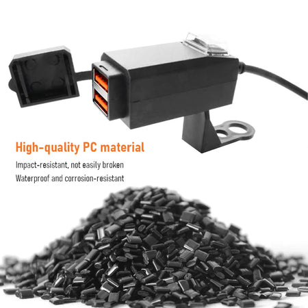 Ontworpen voor motorfietsen, levert dit compacte, eenvoudig te installeren accessoire Dubbele USB poorten met Quick Charge 3.0 ondersteuning, zodat je twee apparaten tegelijk kunt opladen zonder vertraging. Het slanke, lichtgewicht ontwerp past netjes op een radiale motorfietshouder en voedt je apparatuur via het 12V-systeem van je motor—klaar voor regen of zon.