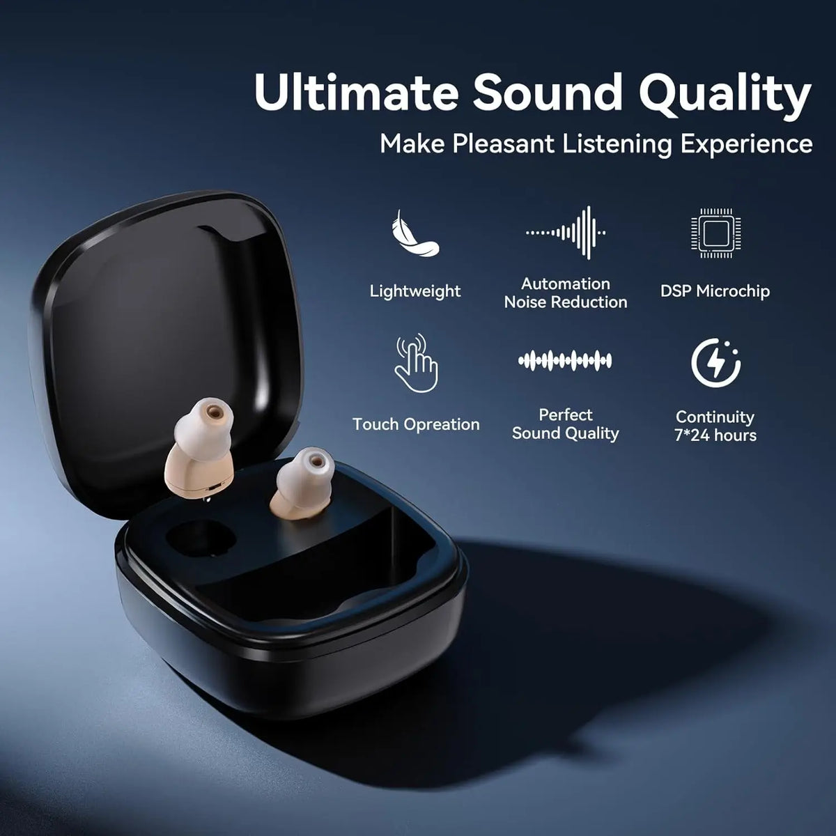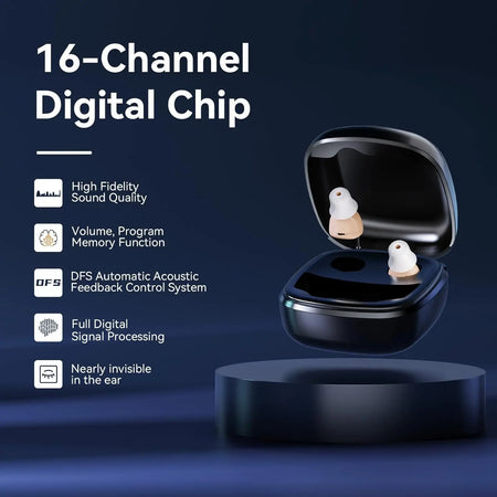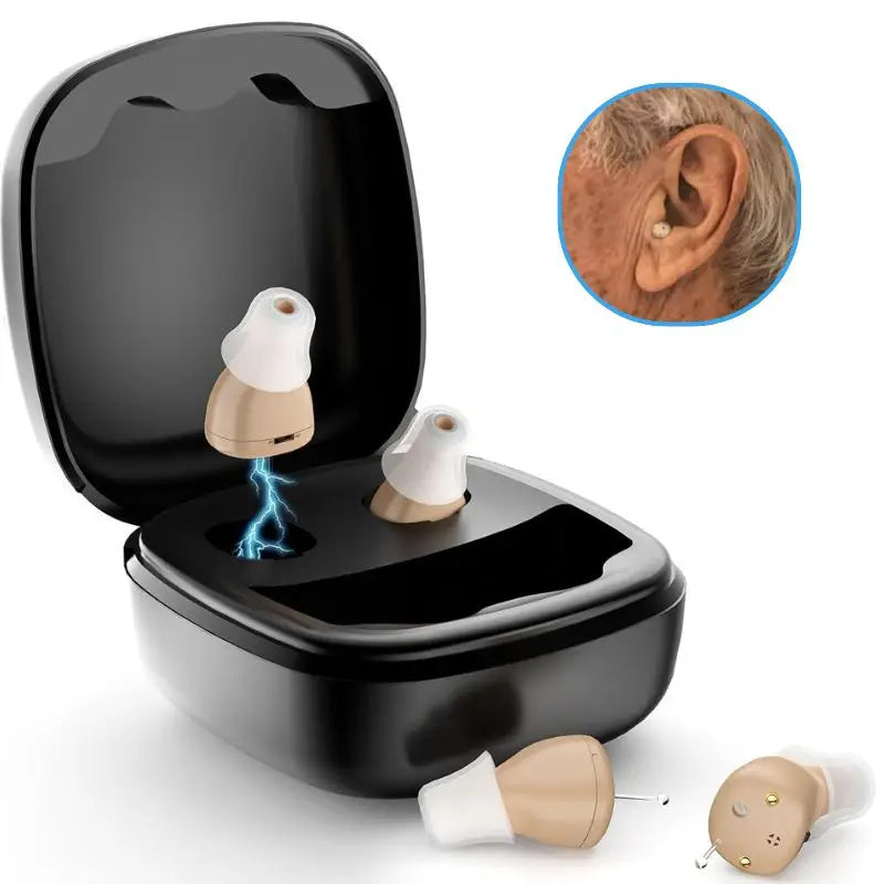 Ervaar bijna onzichtbare versterking met de Oplaadbare CIC Onzichtbare Hoortoestellen. Deze volledig-in-het-kanaal (CIC) apparaten zijn ontworpen voor ultra-lage zichtbaarheid en dagelijks comfort. Zachte oordopjes in meerdere maten zorgen voor een veilige, persoonlijke pasvorm voor de hele dag dragen op werk, thuis of onderweg. Het oplaadbare ontwerp en het reisklare oplaadetui bieden tot 25 uur gebruik op één lading, plus vijf extra volledige ladingen wanneer je niet thuis bent—geen wegwerpbatterijen nodig.