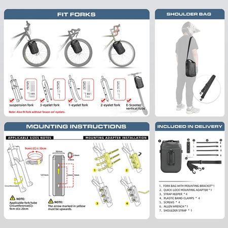 Rhinowalk RK404/406 Voorvork Tas Set, Snelle Bevrijding, Waterdicht 4L/6L